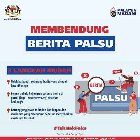 ? Tidak berkongsi sebarang berita yang diragukan kesahihannya ? Semak dahulu kebenaran sesuatu berita di portal ??????????.?? sebelum berkongsi ? Bertanggungjawab terhadap kandungan dan maklumat yang disebarkan sebelum menyebarkan maklumat tersebut #KKD #MalaysiaMADANI