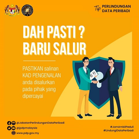 Sebelum kongsikan data peribadi anda, pastikan semak terlebih dahulu dan benar-benar yakin dengan keputusan anda. #JomAmbilPeduli #LindungiDataPeribadi #Akta709