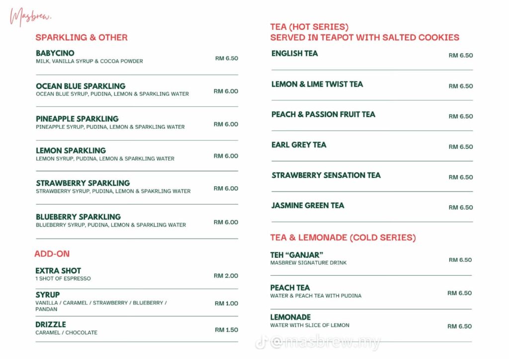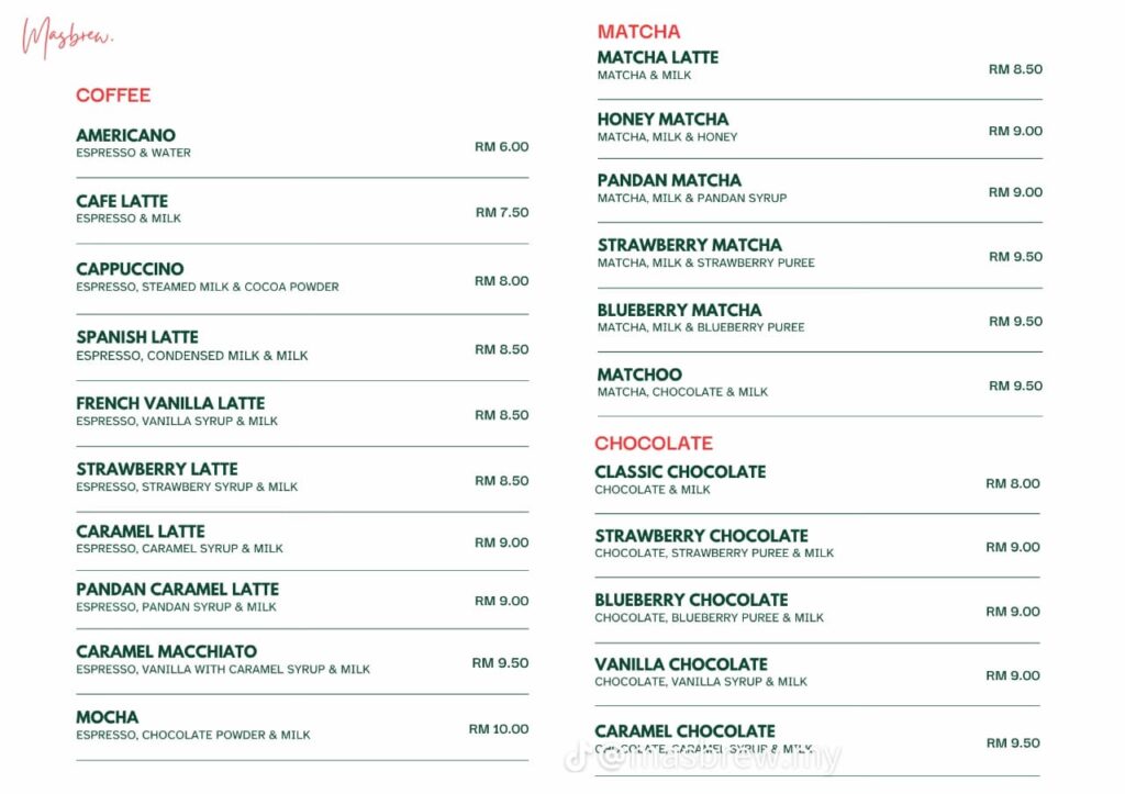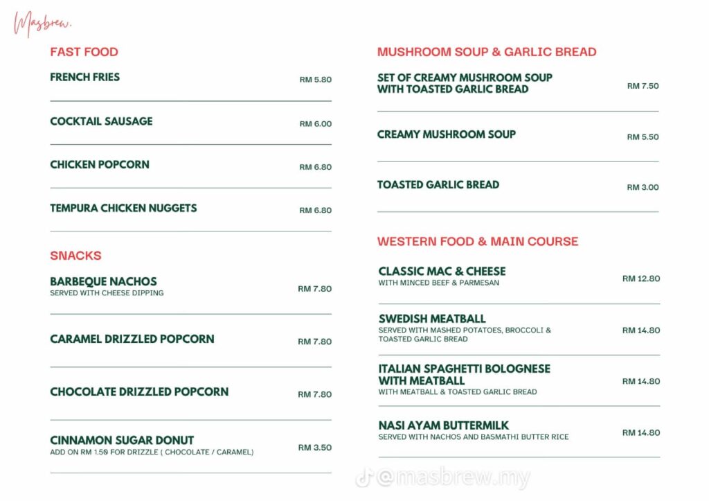 Masbrew menyediakan pelbagai jenis minuman dan makanan seperti Fast Food, Western Food & Dessert ☕️🍰🍛🍵
