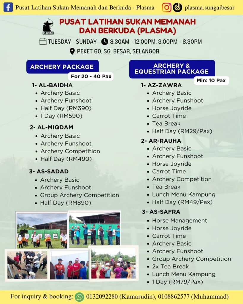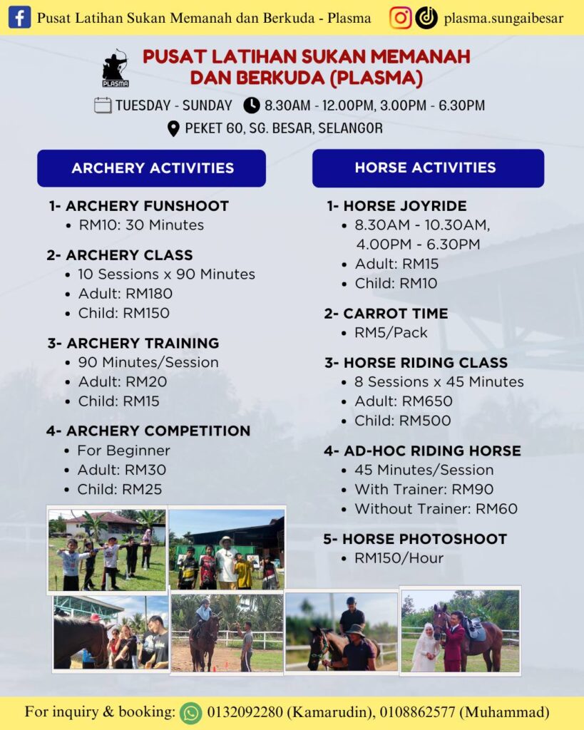 Jom rasai sendiri pengalaman menunggang kuda dan memanah tradisional di Pusat Latihan Sukan Memanah & Berkuda – Plasma, Sungai Besar!